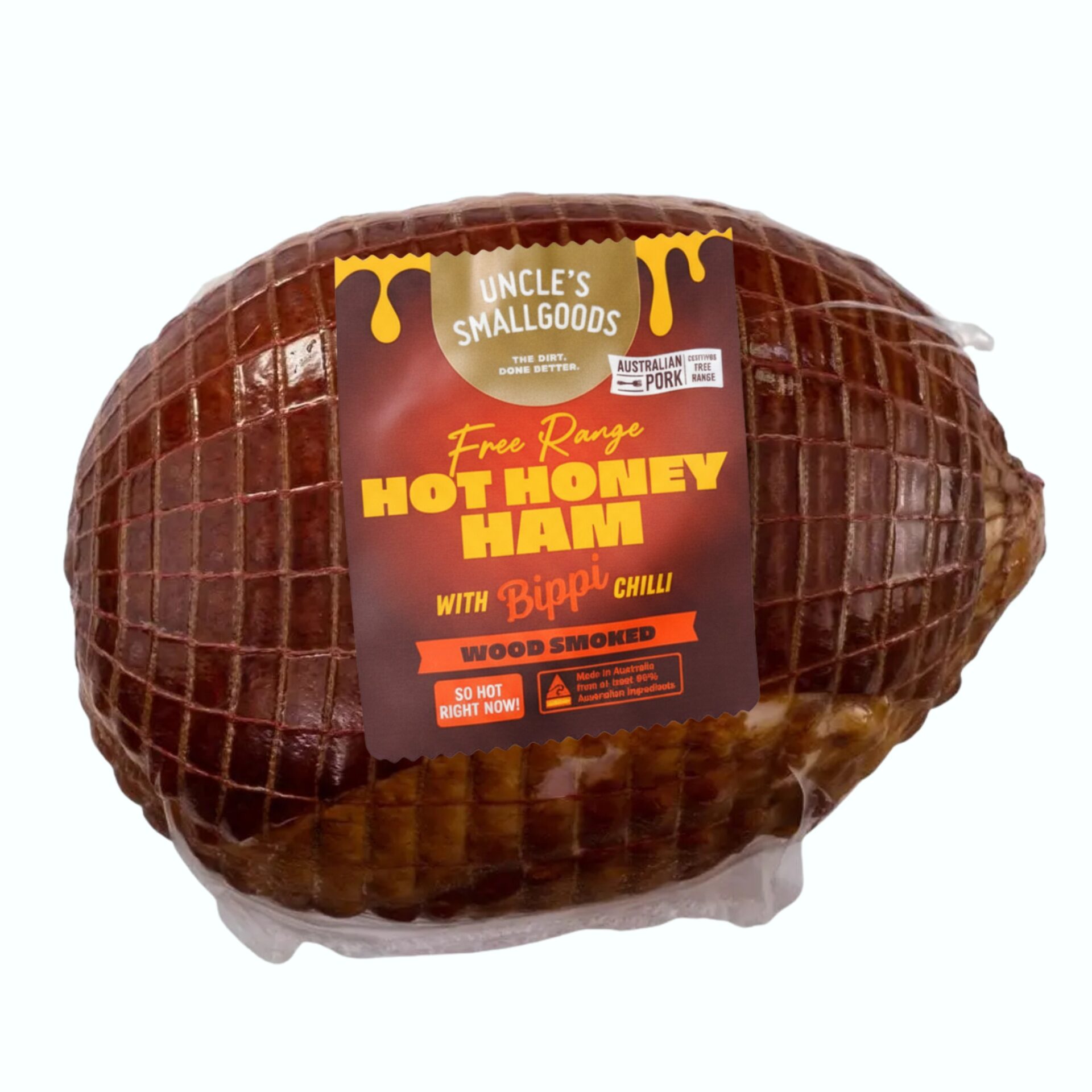 Australian Free-Range Pork (95%), sea salt, fresh chilies, honey, spices & sugar, sodium nitrite (250), mineral salts (451, 452), antioxidant (316), natural wood smoke.
