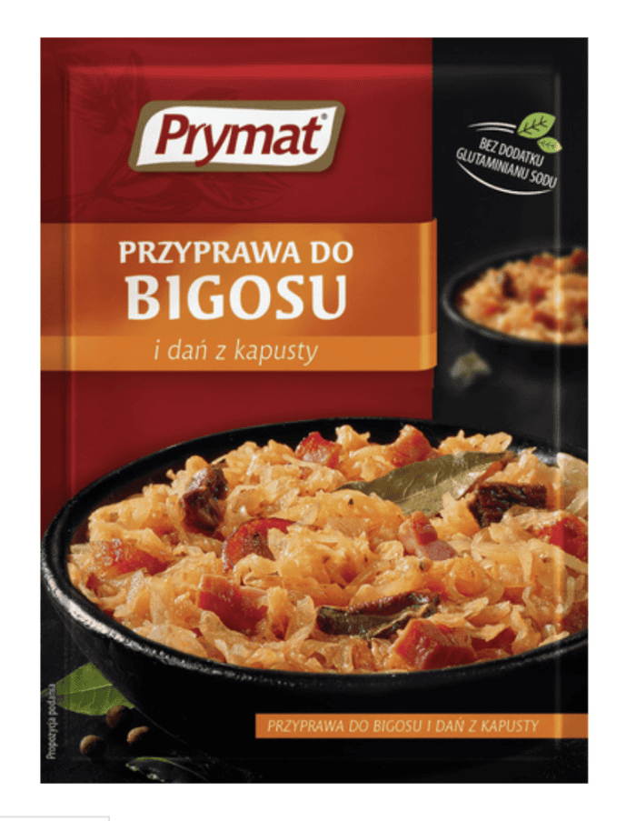 Prymat Spice To Bigos Seasoning 20gSpecial Prymat composition of herbs, seasonings and dried vegetables is a perfect complement to bigos. Prymat bigos seasoning improves taste and smell of bigos and any other cabbage dishes. It is a traditional mixture of herbs, seasonings and dried vegetables, which is composed of garlic, caraway, coriander, allspice, laurel, marjoram and juniper berries.